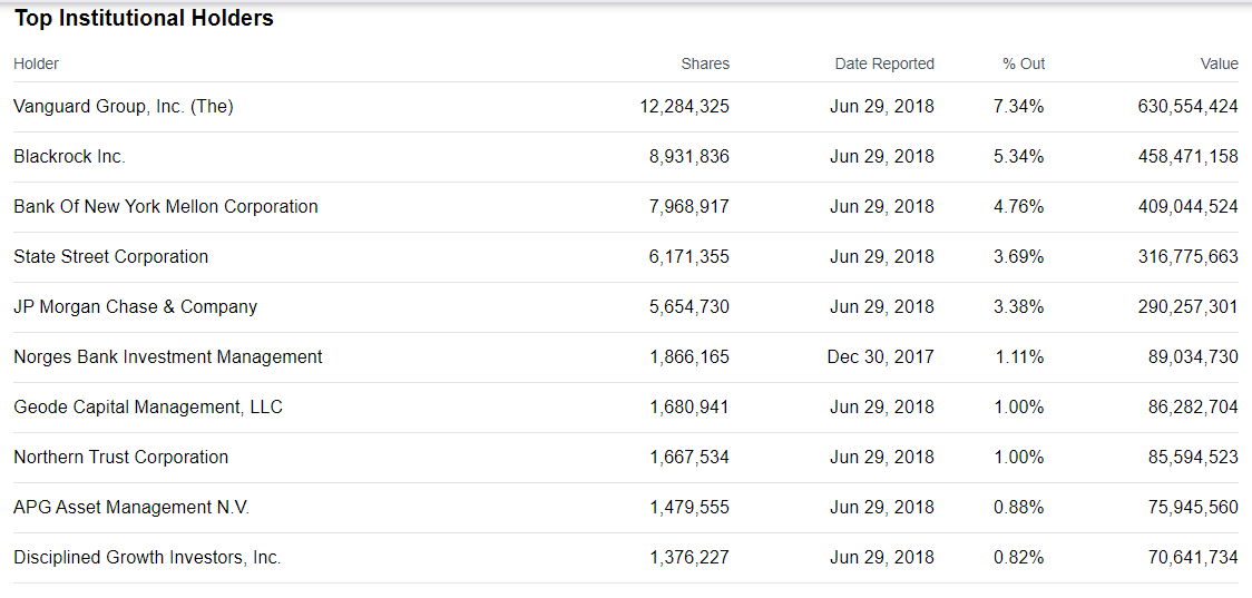 The ten largest institutional shareholders own about 29 percent of the company’s stock. This is not an unusual number for most publicly traded companies.